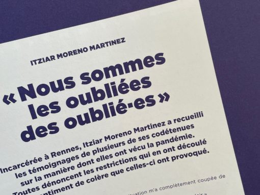 Incarcérée à Rennes, Itziar Moreno Martinez a recueilli les témoignages de plusieurs de ses codétenues sur la manière dont elles ont vécu la pandémie. Toutes dénoncent les restrictions qui en ont découlé et le sentiment de colère que celles-ci ont provoqué.