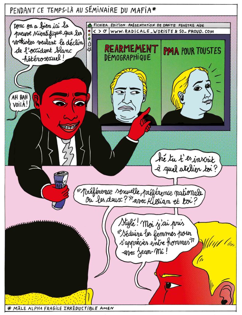 ALICE ZENITER Moi, j’aime bien utiliser le terme « arabe » pour signer une solidarité. De la même manière, mais pas du tout dans les mêmes lieux, j’utilise le terme « bougnoule ». C’est une façon de dire : « De toute façon, c’est ça qu’on est pour eux », de tordre le bras à la première insulte raciste que j’ai prise dans la gueule. En revanche, comme dans toutes les situations où tu retournes le stigmate, quand quelqu’un, qui ne fait pas partie de cette communauté d’entraide et de mémoire, dit « les Arabes » pour parler de gens qui ne le sont pas, là, je corrige.