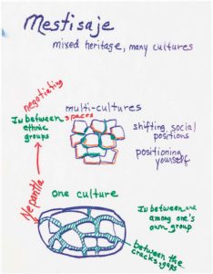« Je suis une femme de frontière. J’ai grandi entre deux cultures, la culture mexicaine (avec une forte influence indienne) et la culture anglo (en tant que membre d’un peuple colonisé sur son propre territoire). J’ai chevauché cette frontière tejas-mexicaine, et d’autres, toute ma vie. Ce n’est pas un territoire confortable où vivre, ce lieu de contradiction.
