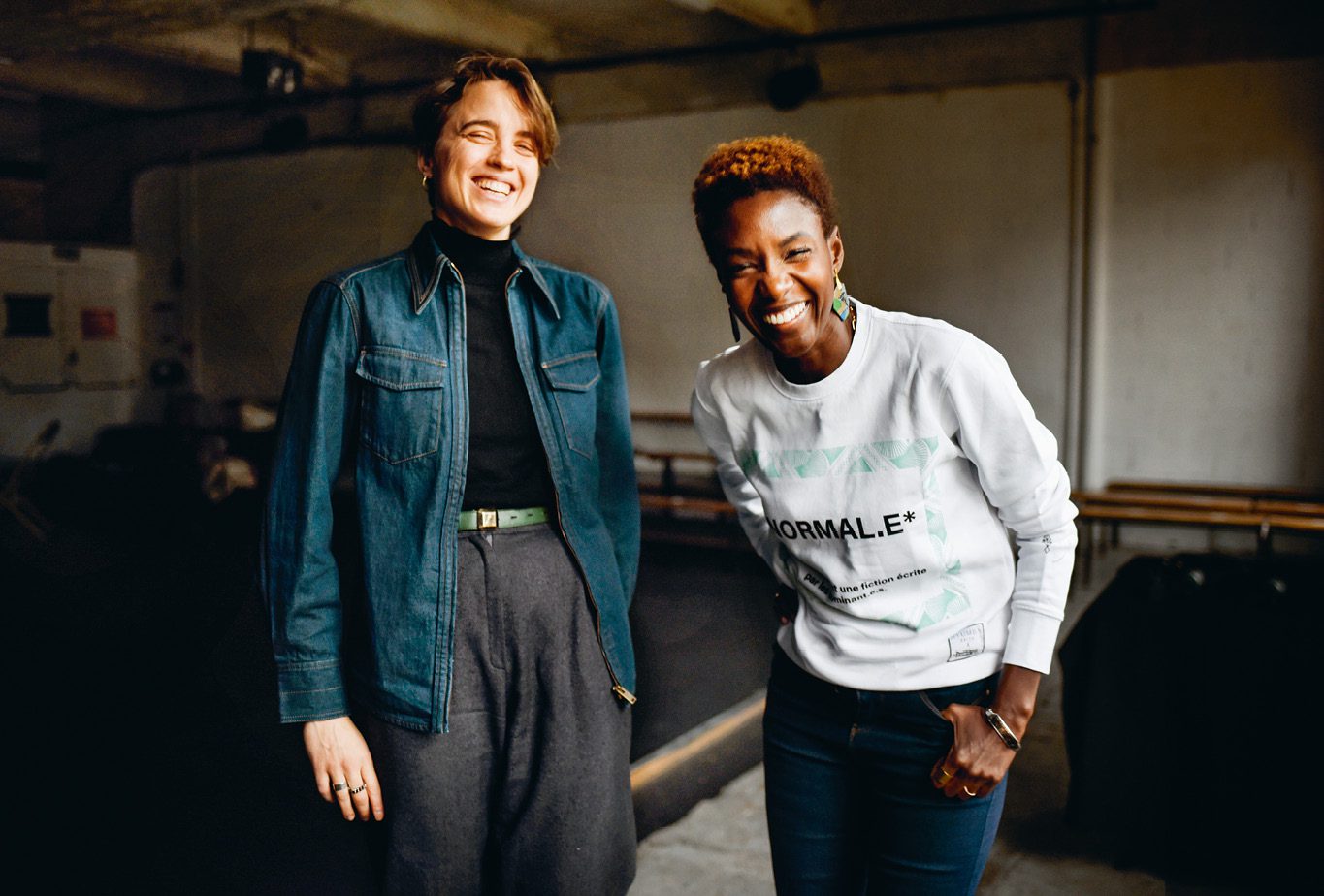 C’était un vendredi de décembre pluvieux. Comme il faisait froid dans le grand studio de danse du Point éphémère, Adèle Haenel a gardé son bonnet orange sur la tête tout au long de l’entretien et a prêté son blouson à Rokhaya Diallo. À l’issue de la rencontre, répondant à l’invitation de La Déferlante, elles ont échangé un cadeau. À Adèle Haenel, Rokhaya Diallo a offert Le Iench (Actes Sud, 2020), une pièce de théâtre signée de la metteuse en scène Eva Doumbia, membre fondatrice du collectif Décolonisons les arts. Elle raconte l’histoire de Drissa, un petit garçon français d’origine malienne qui vit dans un pavillon de province avec sa famille et rêve d’une vie banale, comme celle qui s’affiche dans les publicités. « Tu vas voir, c’est un très beau texte de théâtre », a commenté Rokhaya Diallo. Celle-ci s’est vu offrir Le Pouvoir des mots de la philosophe américaine Judith Butler, pionnière des théories queer. « Ce livre m’accompagne et me nourrit dans ma réflexion sur la justice », a précisé Adèle Haenel. Butler y analyse les effets des discours de haine. Expliquant pourquoi il est dangereux de confier à l’État ce qui relève du dicible et de l’indicible, le livre montre que les personnes ciblées par les violences verbales peuvent vider celles-ci de leur substance en créant des espaces de luttes et de subversion.