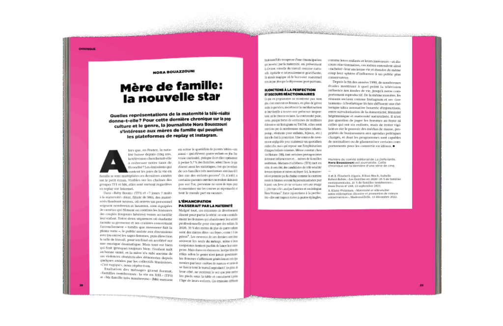 Pendant longtemps, j’ai ignoré la plupart des gestes de la parfaite maîtresse de maison et de la mère idéale. Mon corps n’a pas appris à les faire. Lorsque mon grand frère devait passer l’aspirateur ou aider à mettre la table, j’étais gênée de continuer à jouer, m’interrogeant sur mon utilité au sein de la maison. Frustrée de ne pouvoir faire ma part des tâches ménagères, je me demandais souvent quelle était ma place dans la famille.