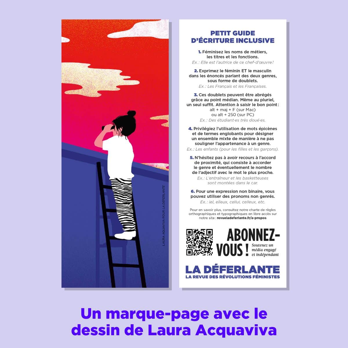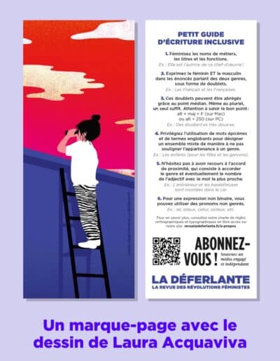 ✓ Le marque-page dessiné par Laura Acquaviva avec un petit guide d’écriture inclusive au verso
