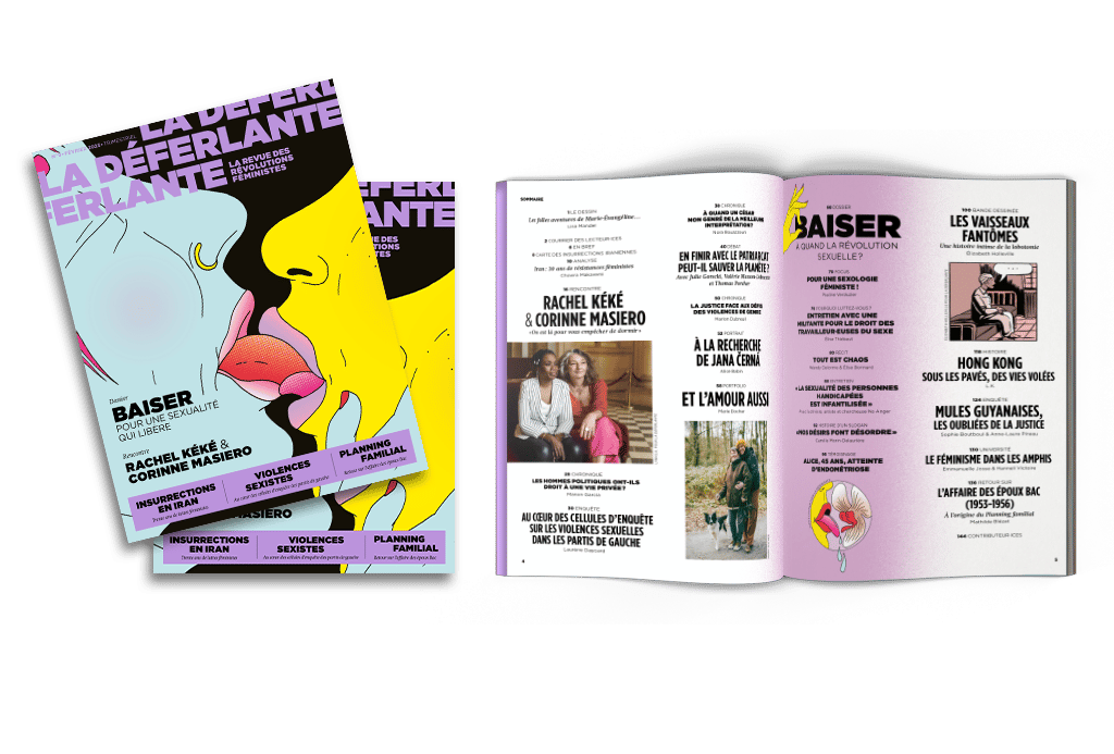Vous retrouverez également, une rencontre inédite entre l’actrice Corinne Masiero et la députée LFI Rachel Keke, un portfolio de Marie Docher sur les amours lesbiennes, une BD inédite d’Élizabeth Holleville sur la lobotomie ainsi qu’un retour sur les origines du Planning familial.