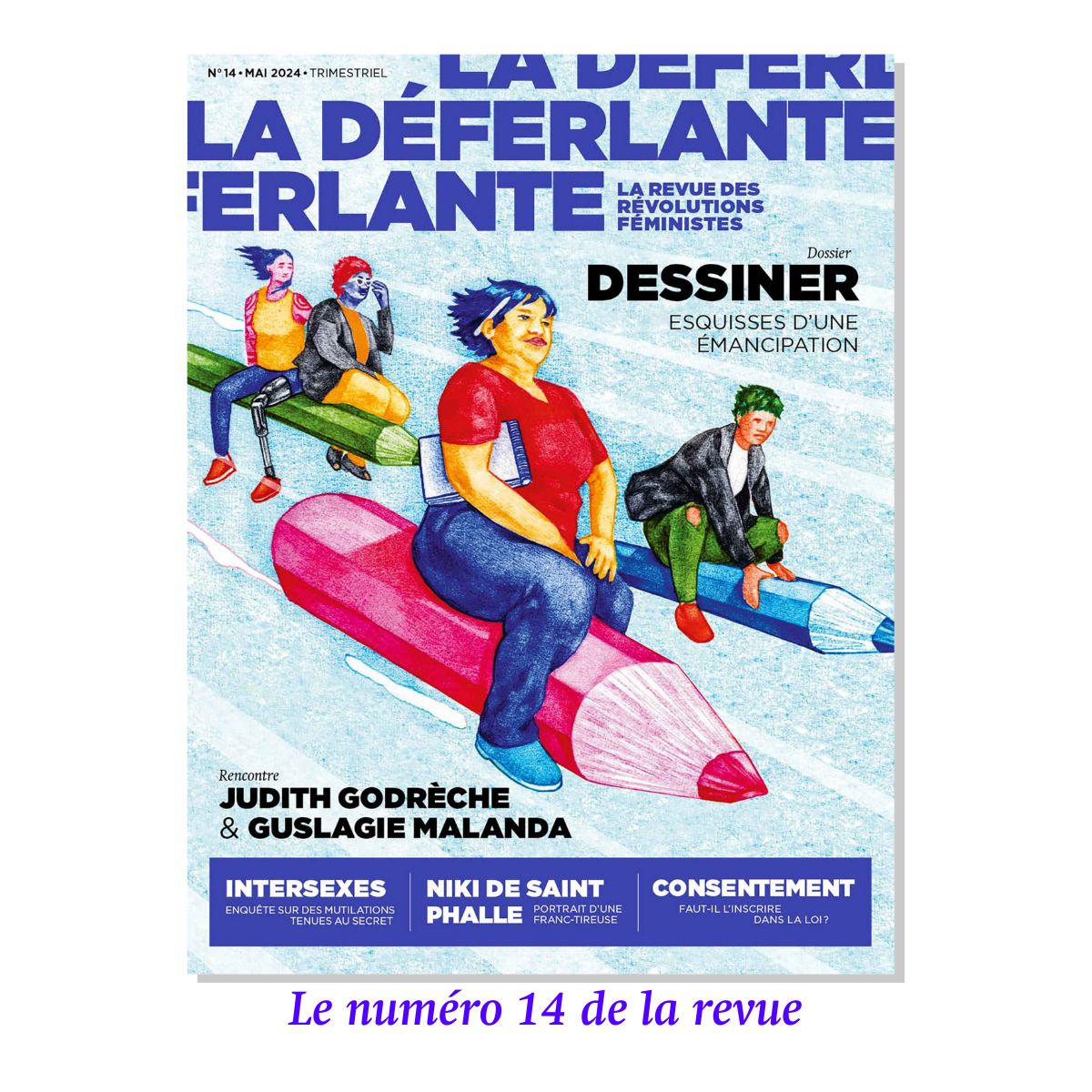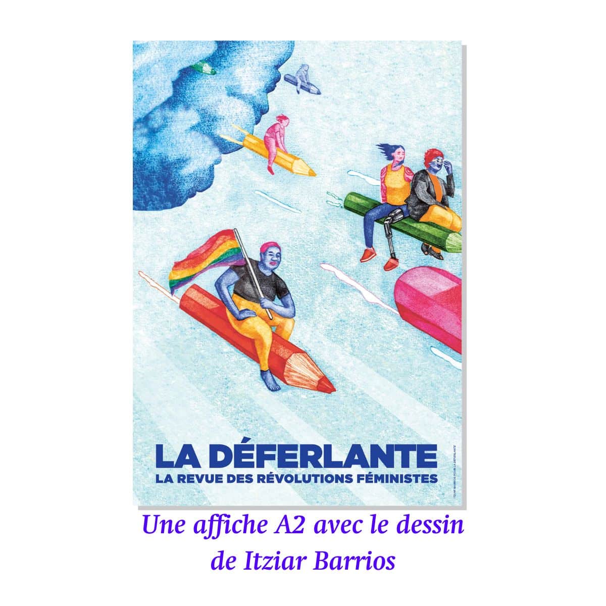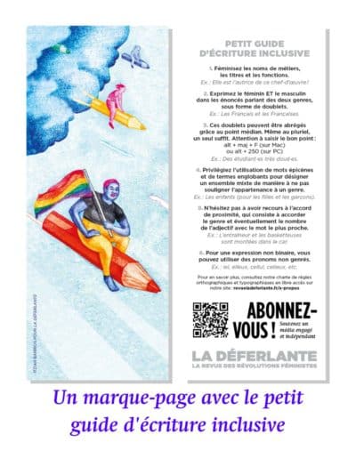 ✓ Le marque-page du numéro 14 « Dessiner » dessiné par Itziar Barrios, avec au verso le petit guide d’écriture inclusive
