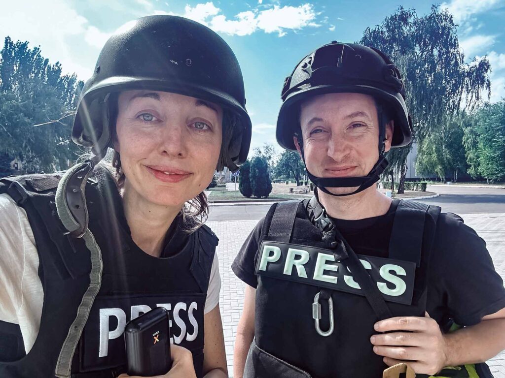 C’est parce qu’elle voulait documenter la guerre que Maurine Mercier a choisi, en 2016, de quitter le service public suisse, où elle était cantonnée à la présentation d’émissions. « Je ne suis pas attirée par la violence, mais je n’aime pas l’idée que, sous prétexte qu’on a peur, il ne faudrait pas couvrir des situations essentielles », explique-t-elle. Pendant sept ans, elle documente la vie en Tunisie et en Libye. Cela fait plus de trois ans désormais que la quadragénaire vit la guerre auprès des Ukrainien·nes – elle a reçu à deux reprises le prix Bayeux Calvados-Normandie catégorie radio pour son travail à Boutcha7« La double peine d’une mère victime de viols à Boutcha », France Info-RTS, reportage diffusé le 13 avril 2022. Le massacre de Boutcha est une série de crimes de guerre commis par l’armée russe en Ukraine entre le 27 février et le 31 mars 2022, au nord de Kyiv.. Maurine Mercier assure qu’être une femme est le meilleur des outils pour travailler… et ce, parfois, grâce au patriarcat. « Je me voile, je porte des lunettes de soleil et je ne mets personne en danger, ni mon traducteur, ni mon fixeur. Un reporter blond, il y a écrit “à kidnapper” sur son pantalon à poches. Que ce soit en Libye ou en Ukraine, je passe bien plus facilement les checkpoints. Il y a une part de : “C’est une femme, elle n’est pas bien dangereuse.” C’est le machisme qui veut ça, et j’en profite ! »