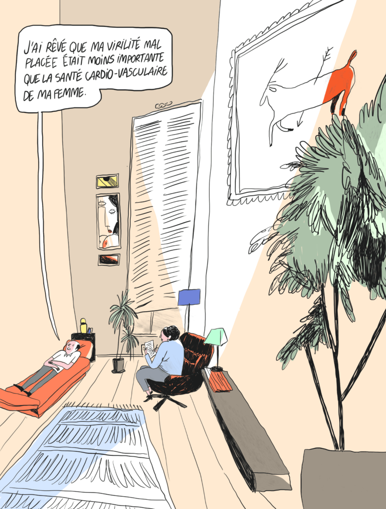 En entrant dans le bureau à mon tour, j’ai fermé la porte, et très vite la discussion a porté sur cette pratique en général, sur les peurs des patients et de leurs conjointes. L’échange s’est poursuivi avec le praticien, qui, heureux de mon intérêt pour la chose, s’est lancé dans un cours d’histoire. Ainsi ai-je appris que le délai de réflexion obligatoire de quatre mois avant l’opération était la trace d’une légalisation tardive de la pratique: jusqu’en 2001, elle était considérée comme une mutilation. Aujourd’hui, on l’utilise comme un « relais de contraception » – j’ai mis un nom sur ce que j’étais venu faire. Elle reste peu pratiquée en France – quelque dix mille personnes en 2020, soit dix fois plus que dans les années 2000 –, mais concerne un homme sur cinq au Canada ou au Royaume-Uni, et environ un sur dix en Belgique, en Suisse, en Espagne ou aux États-Unis. Pourquoi en France, la vasectomie est-elle très mal remboursée — quelques dizaines d’euros — alors que la ligature des trompes est entièrement prise en charge ? Faut-il croire que le patriarcat est si bien structuré que tout est fait pour empêcher les hommes de tenter de s’en extraire?
